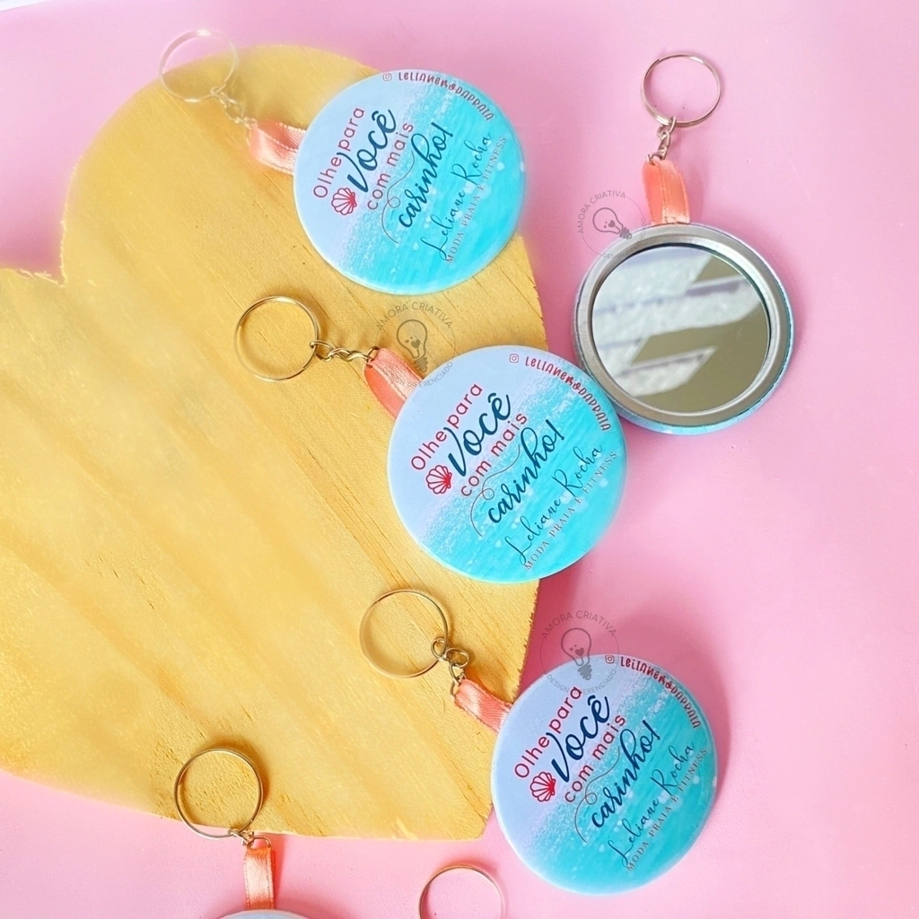 Sobre o produto: ESPELHO COM CHAVEIRO PERSONALIZADO