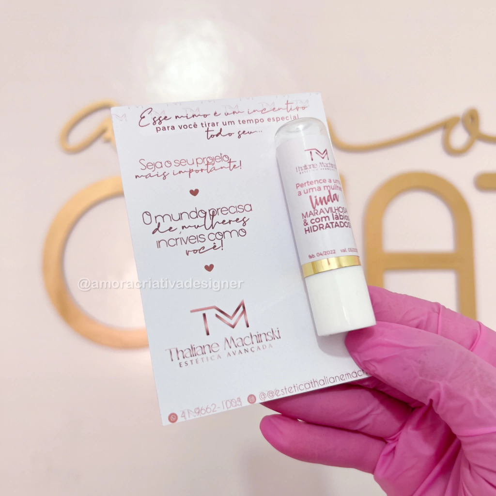 Sobre o produto: Manteiga de cacau personalizado com card e rotulo, uma ótima opção para presentear clientes, pacientes, alunas, colegas de trabalho ou faculdade.