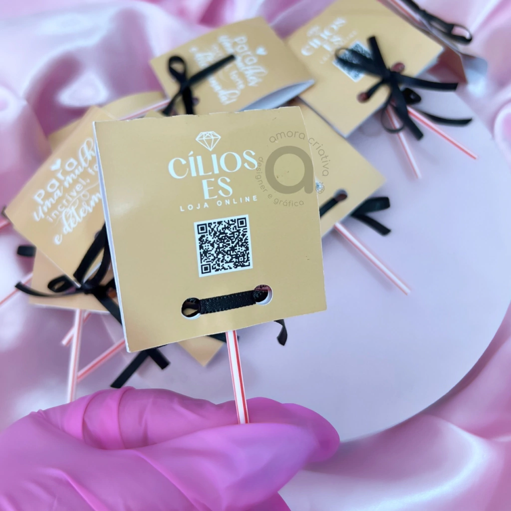 - O pirulito não sai de sua embalagem original, o que permite uma maior durabilidade e evita a contaminação. Por cima da embalagem original, estará a embalagem personalizada.